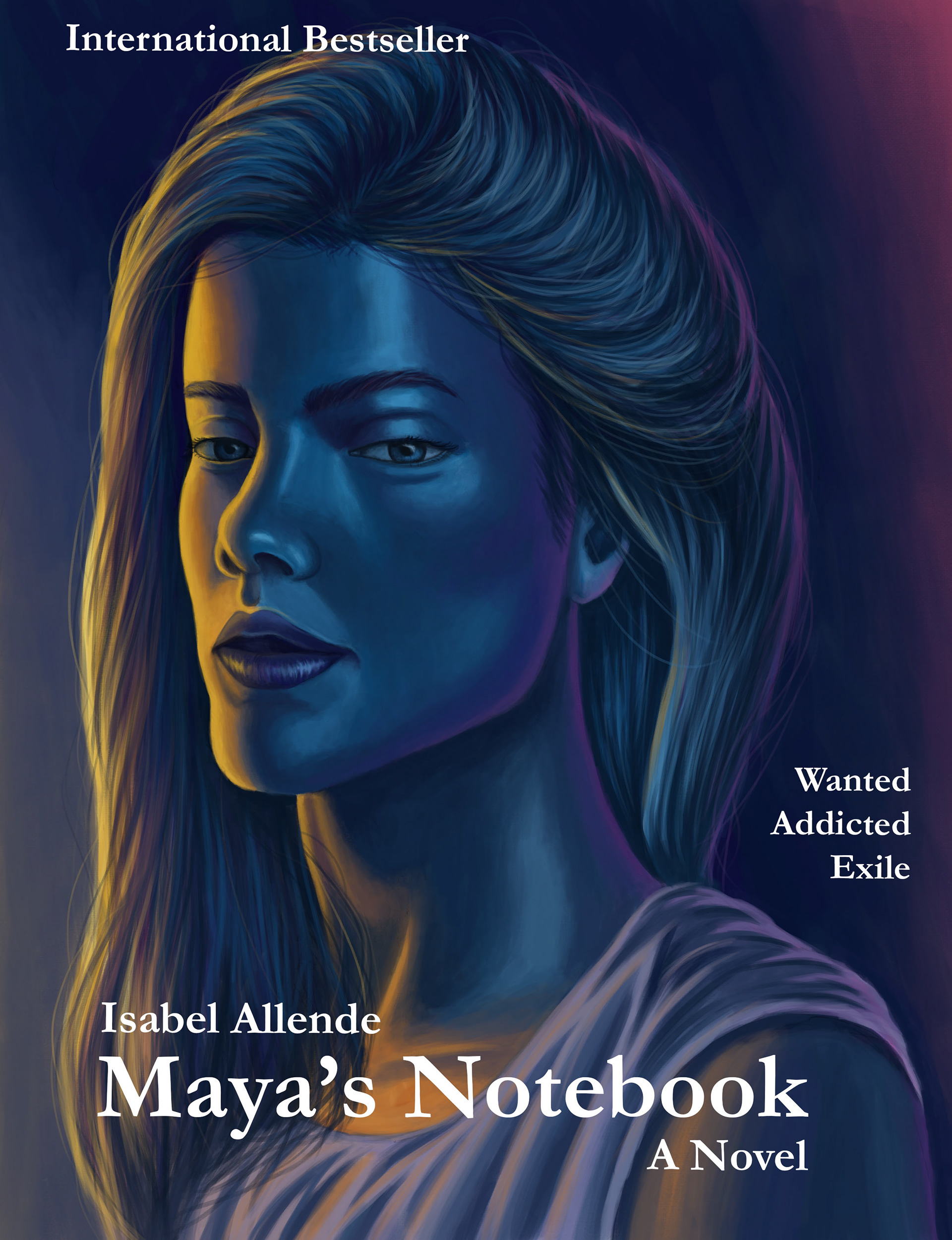 I made this book cover inspired by Isabel Allende's Maya's Notebook.