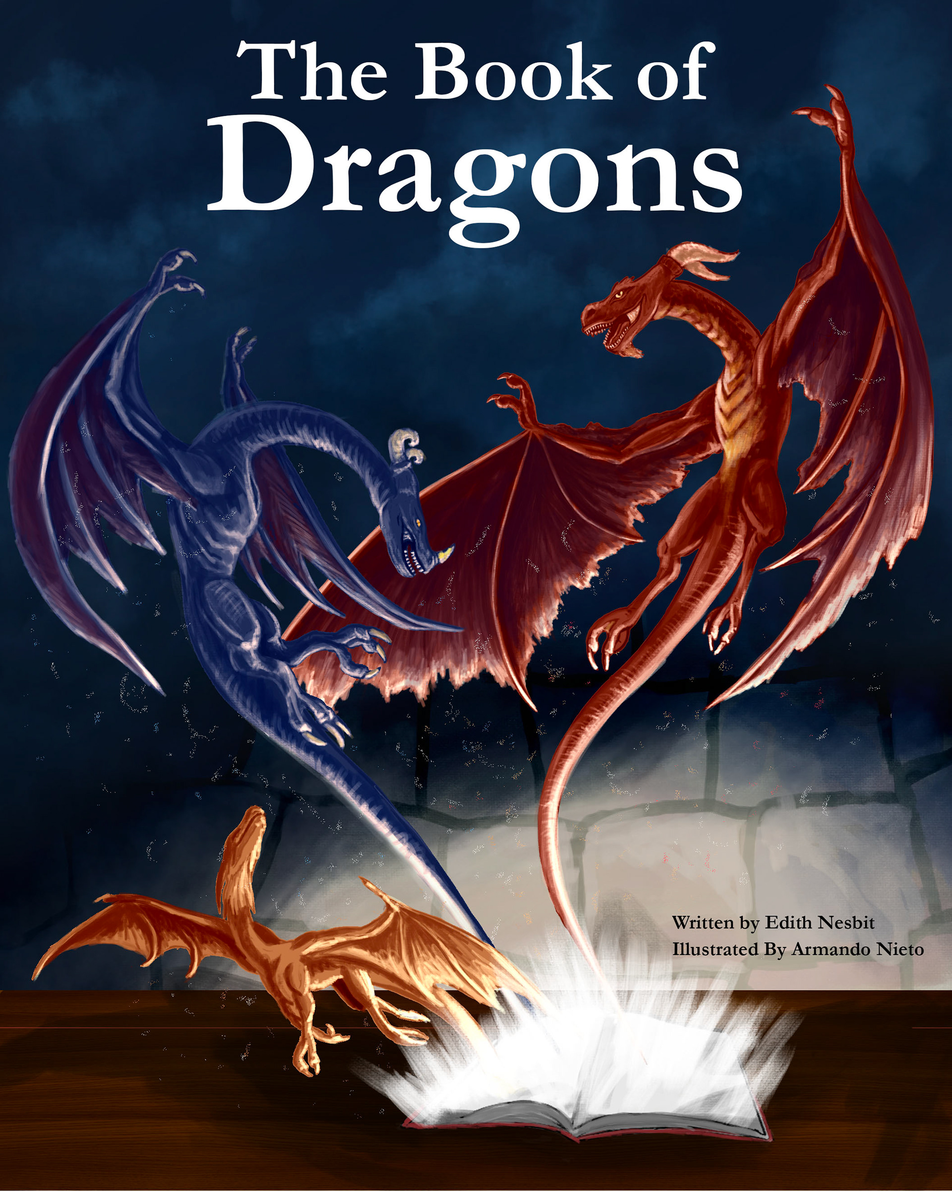 I made this book cover inspired by Edith Nesbit's The Book of Dragons.